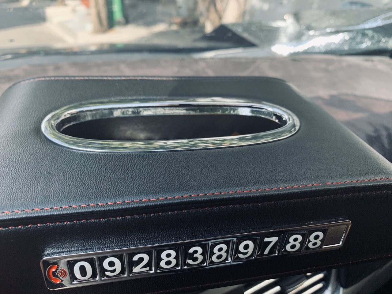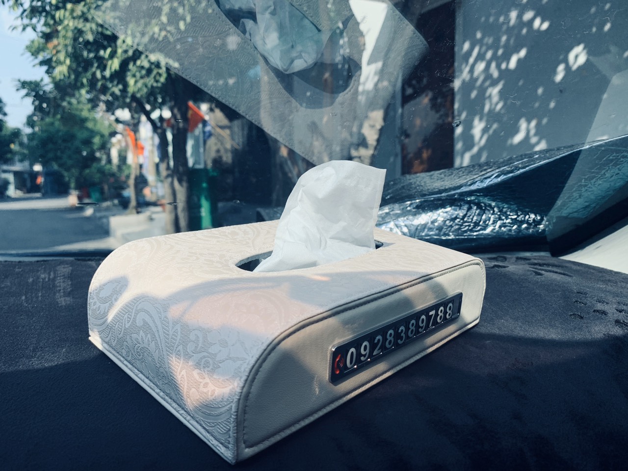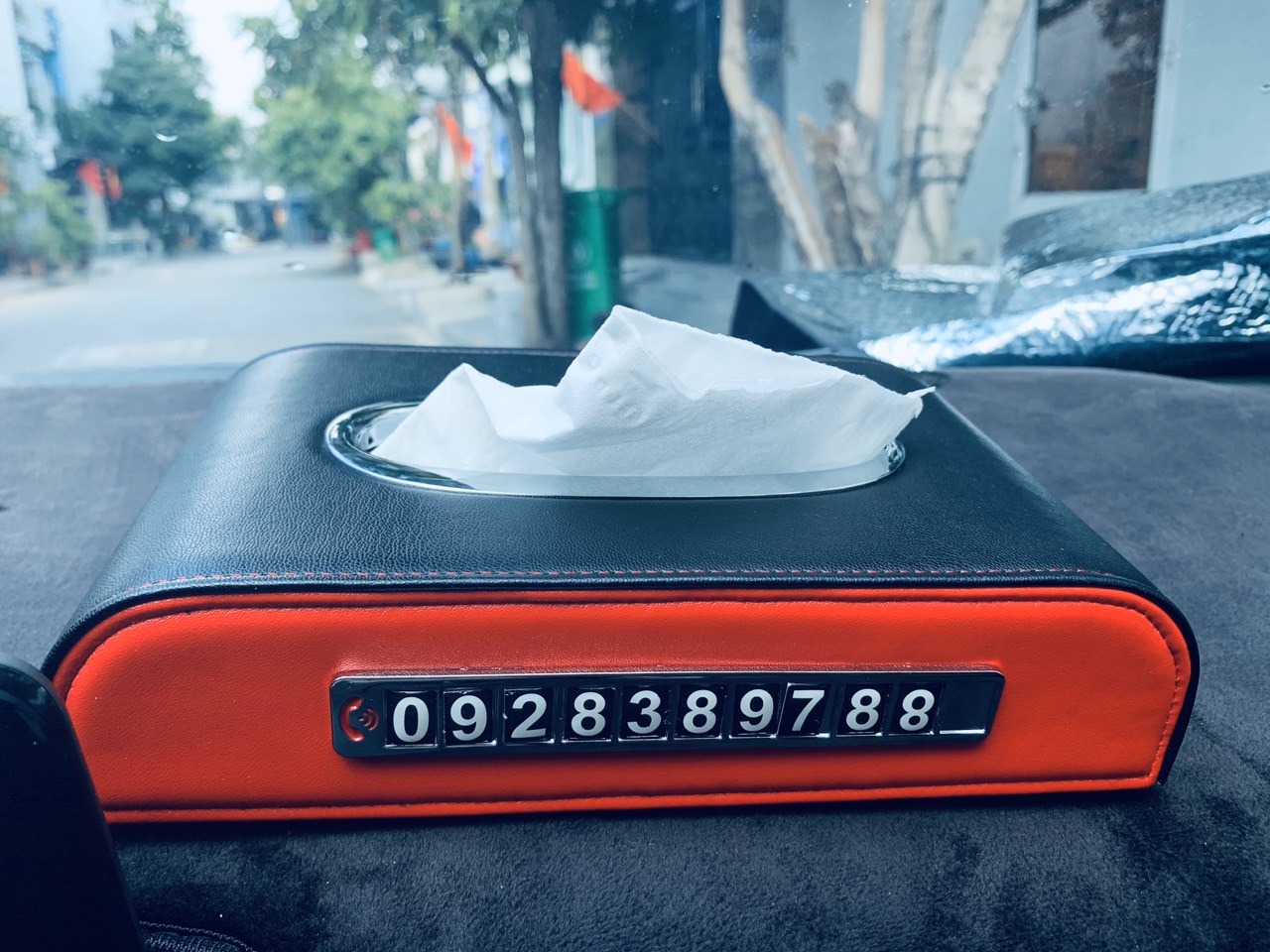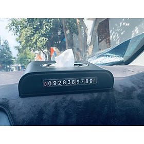 Hộp Khăn Giấy Da Cao Cấp Kèm Bảng Số Điện Thoại Cho Ô Tô