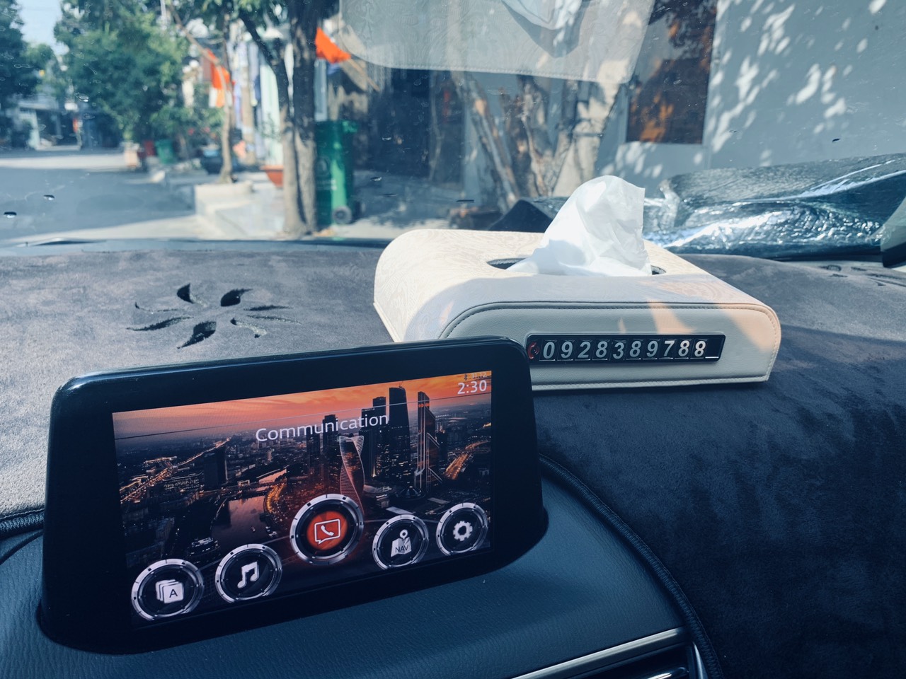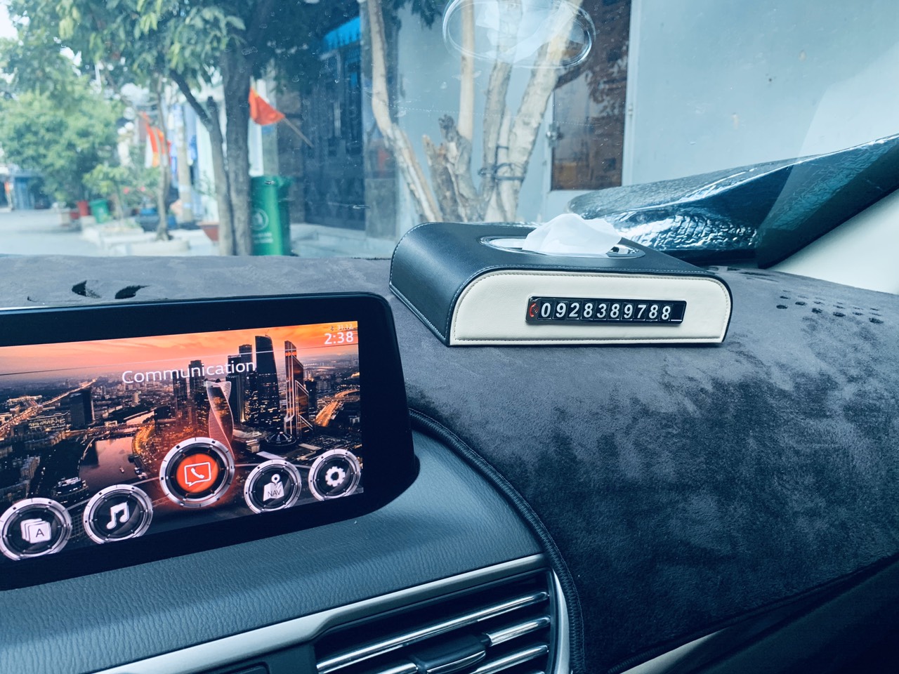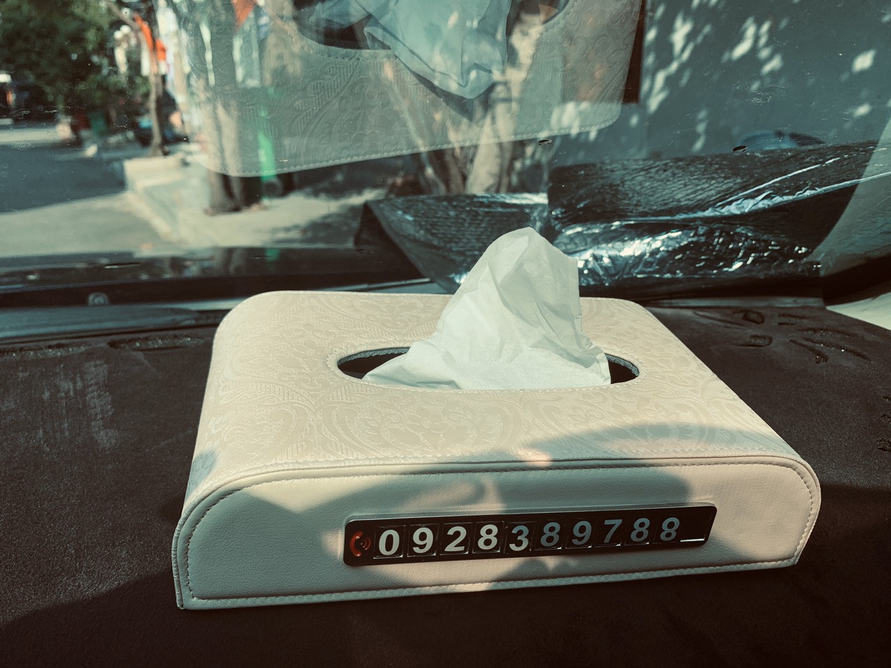 Hộp Khăn Giấy Da Cao Cấp Kèm Bảng Số Điện Thoại Cho Ô Tô