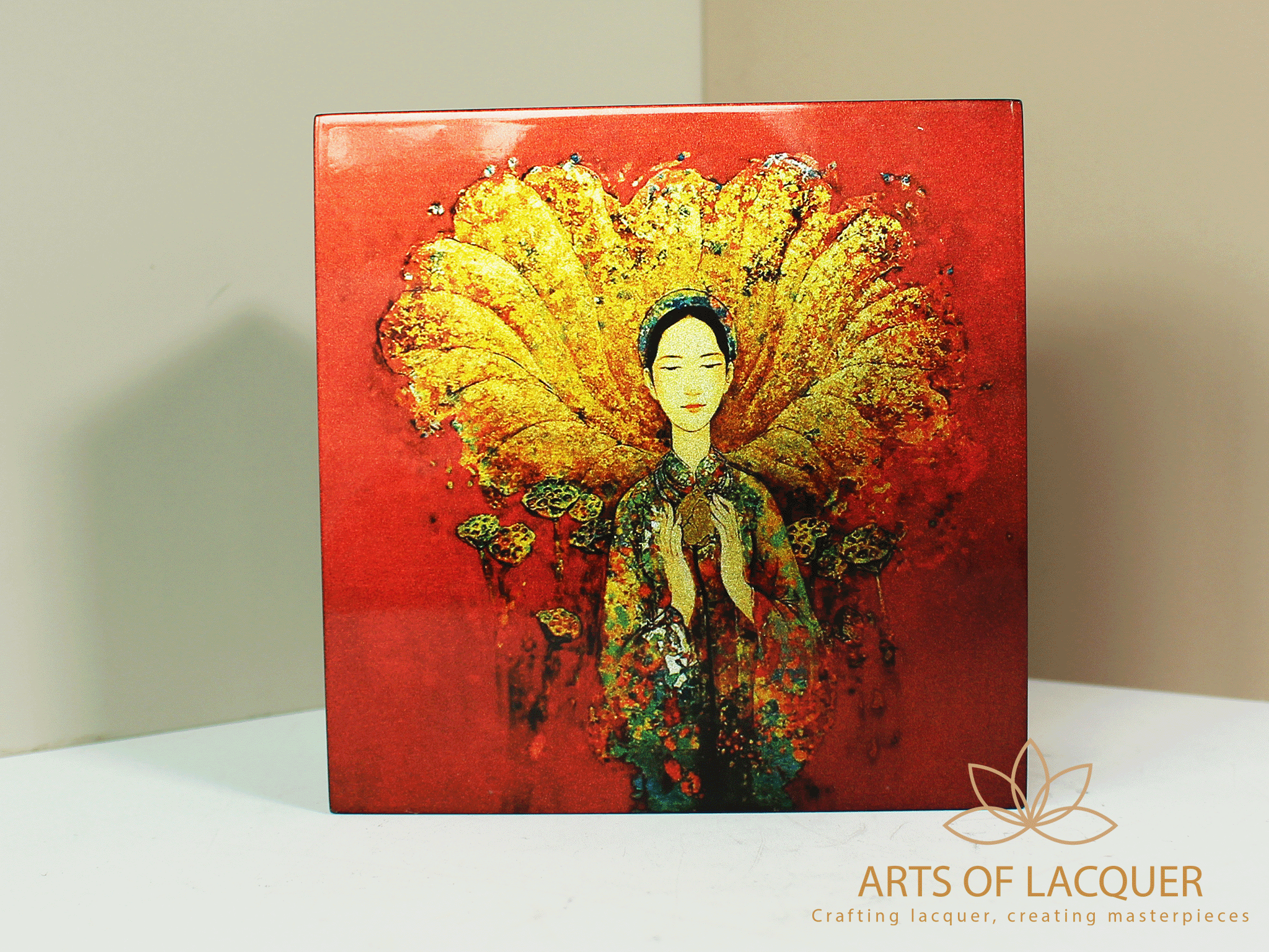 ✨Hộp Lưu Niệm Sơn Mài Họa Tiết Cô Gái Cầm Hoa Sen