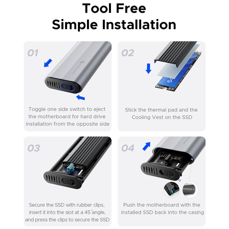 Tính năng nổi bật của Hộp ổ cứng SSD ORICO AXM2S-G2-V1-GY-BP - Tốc độ truyền dữ liệu cực nhanh 10Gbps - Với chuẩn kết nối USB 3.2 Gen 2 Type-C, sản phẩm đạt tốc độ truyền