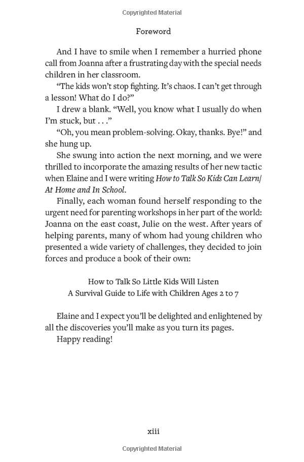 A must-have resource for anyone who lives or works with young kids, with an introduction by Adele Faber, coauthor of How to Talk So Kids Will Listen & Listen So Kids Will Talk, the international mega-bestseller The Boston Globe dubbed “The Parenting Bible.”