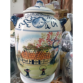 Hũ đựng rượu gạo vẽ phong cảnh Bát Tràng loại 30L (hoa văn ngẫu nhiên)Hũ đựng rượu gạo vẽ phong cảnh Bát Tràng loại 30L (hoa văn ngẫu nhiên)