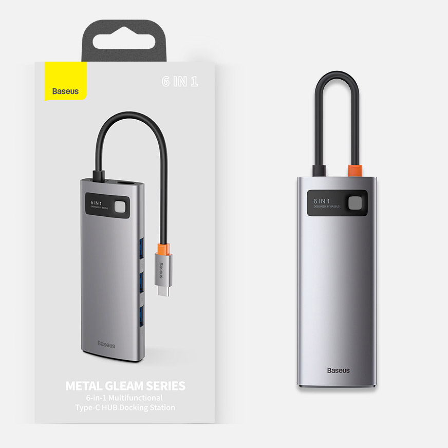 Hub USB Type-C chia cổng 6 in 1 hỗ trợ sạc nhanh 100W cho Macbook / Laptop hiệu Baseus Metal Gleam Series Hỗ trợ trình chiếu video chuẩn 4K thông qua cổng HDMI, thích hợp cho việc xem phim, học tập, hội họp,