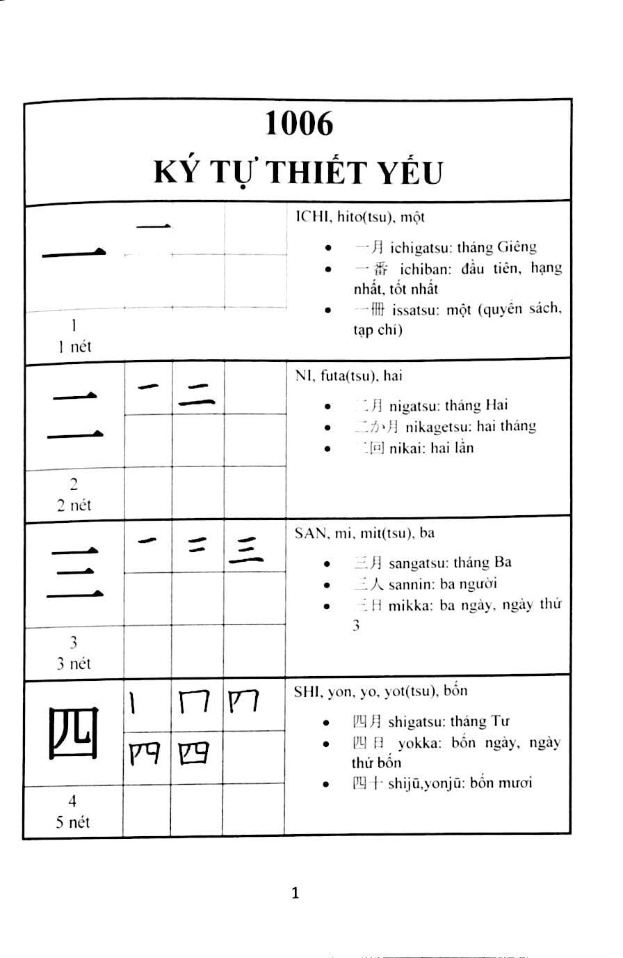 Cuốn sách được biên soạn gồm các ký tự thiết yếu và các bộ chữ trong tiếng Nhật. Qua đó, giúp người đọc hiểu nghĩa để đọc cũng như cách viết các chữ này.