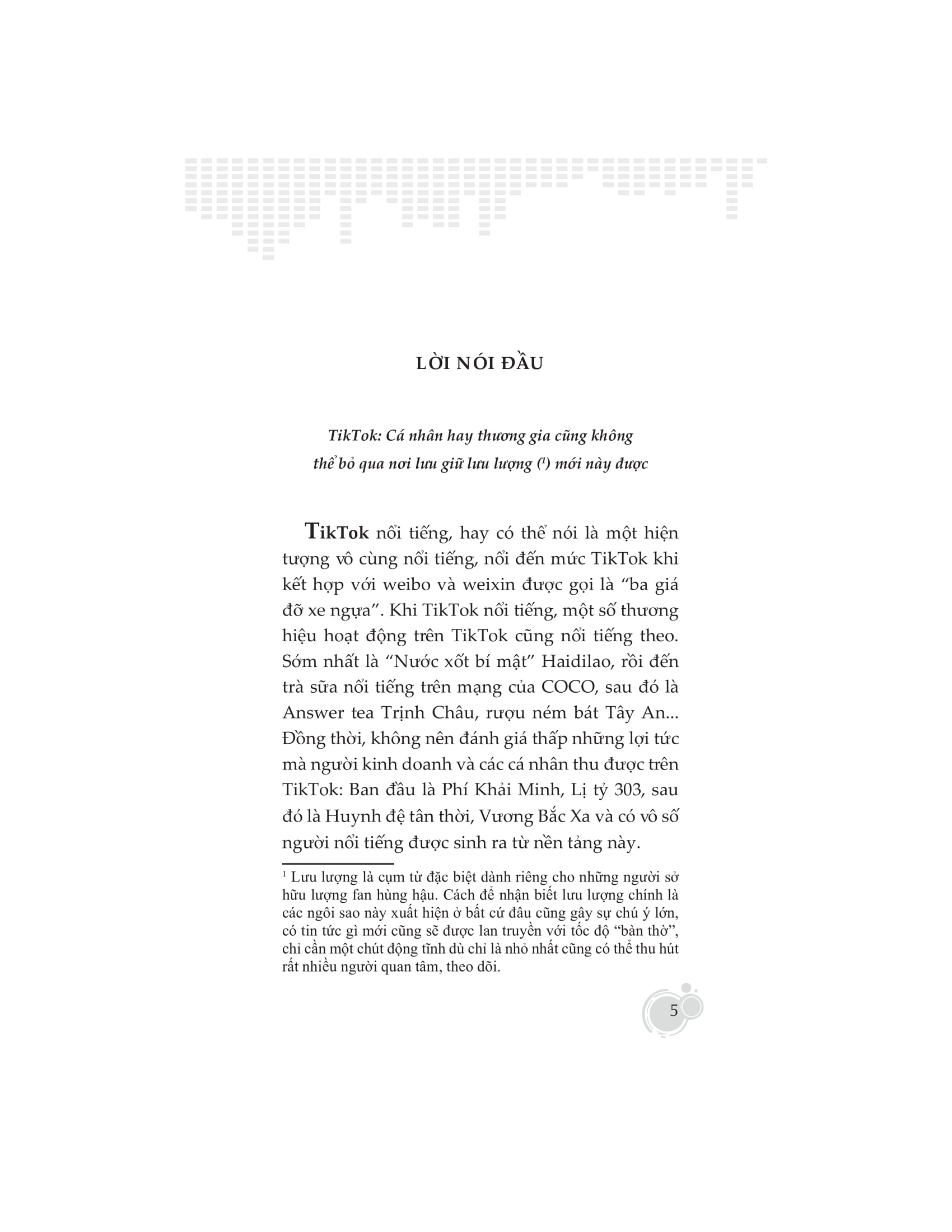 Xét từ góc độ thay đổi và sức mua của fan, chất lượng lưu lượng của TikTok là cao nhất và cũng phù hợp với hoạt động quảng cáo nhất. Hiện nay, lợi tức của TikTok đang ở giai đoạn tăng trong hình chữ U ngược, nếu muốn thu được nhiều lợi tức thì phải nắm bắt được. Vậy sử dụng TikTok như thế nào mới thu hút được nhiều lượng truy cập hơn? “Hướng dẫn kiếm tiền trên TikTok” sẽ giải quyết vấn đề đó. Cuốn sách này đề cập đến mọi khía cạnh việc làm TikTok bao gồm xác định vị trí, content, video, thu hút fan, phát triển, ma trận, lặp lại và kiếm tiền, với những ví dụ đầy đủ, bắt đầu từ khái niệm TikTok đến kỹ xảo thao tác thực tế.