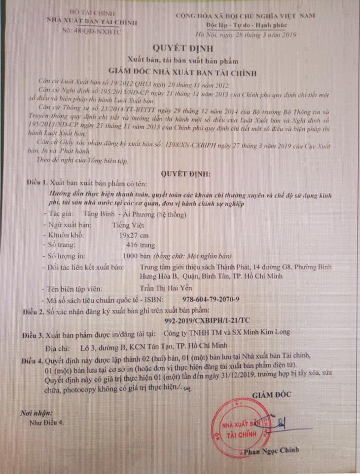 qang, giá phát hành 395000 đ/1q nh 395000 đ/1q quyển . \\Bộ Tài chính đã ban hành văn bản mới hướng dẫn quản lý, thu chi tài chính, quy định nội dung và mức chi