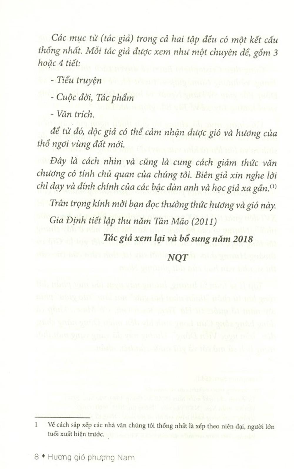 Tập sách này là một phần rất nhỏ - nếu không muốn là gợn sóng của các công trình về sử học, văn học Việt Nam từ thế kỉ XVI đến giữa thế kỉ XX trong tiến trình văn hóa, văn học nước nhà. Nhưng vì các bộ sách vừa kể khá dày, nên ở đây chúng tôi tổng hợp, rút, tỉa các chi tiết mà người viết gọi là Gió có thoảng Hương được thể hiện bởi suy tư, tình cảm của các văn thi sĩ, nhà văn của đất phương Nam.