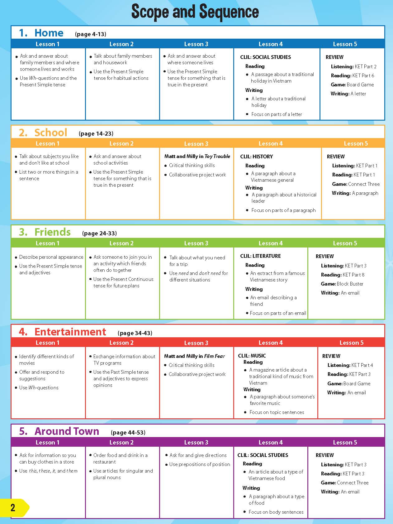 - Bám sát khung chương trình của Bộ Giáo dục và Đào tạo. Nội dung được biên soạn và thiết kế phù hợp với học sinh Việt Nam, lấy yếu tố văn hóa Việt Nam làm nền tảng xây dựng.