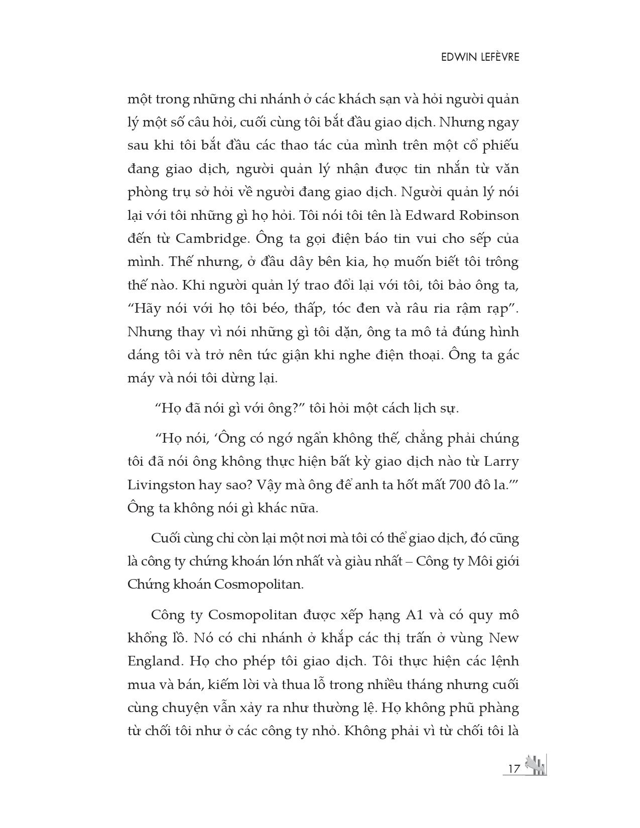 Cuốn sách kinh điển này vẽ nên bức chân dung hoàn chỉnh nhất của Jesse Livermore, từ cậu bé ghi bảng ở Boston đến nhà đầu cơ vĩ đại nhất phố Wall. Hơn 20 chương sách kể lại hành trình của Livermore để trở thành tiếng nói có ảnh hưởng nhất trên thị trường chứng khoán Mỹ vào thời của ông.