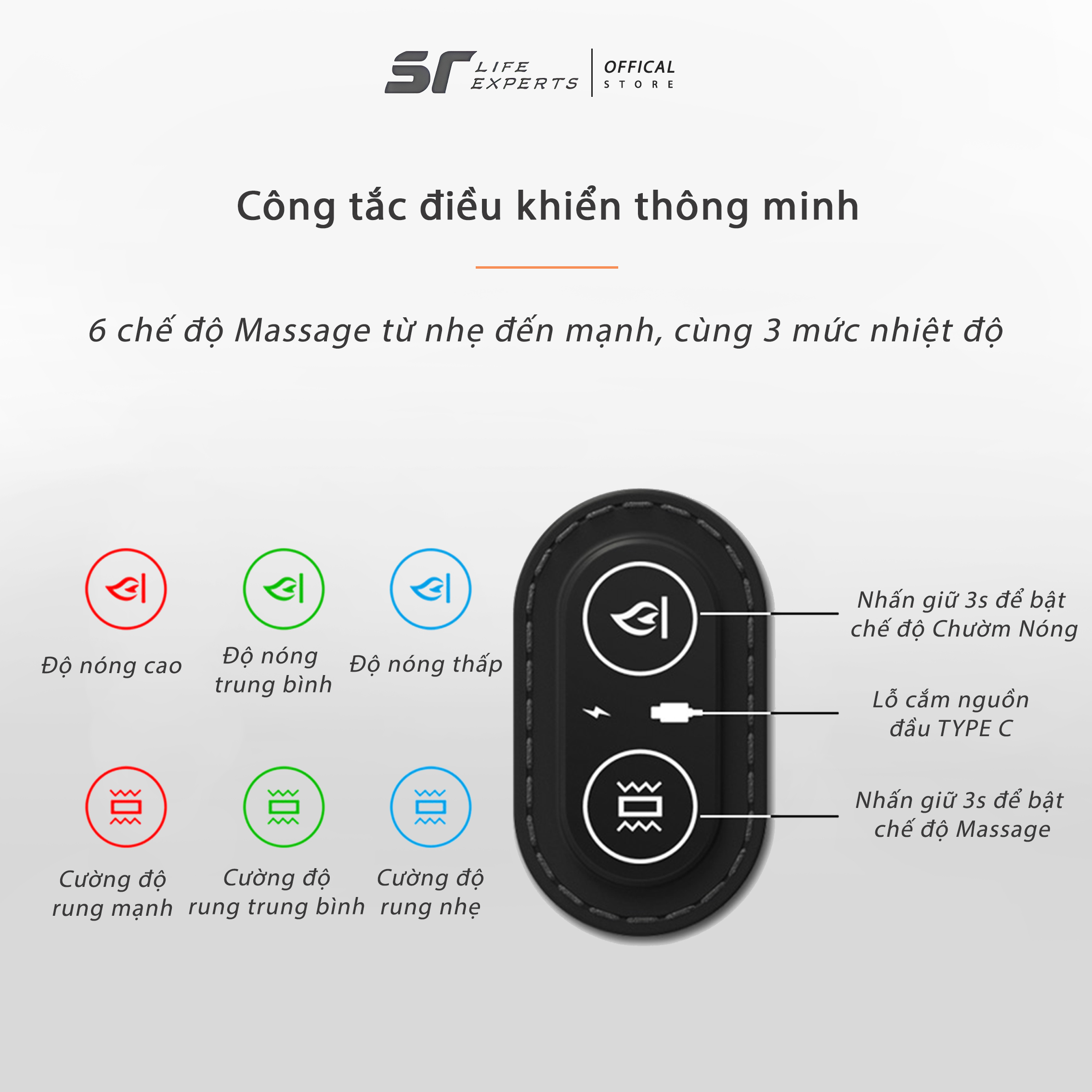 - Chườm nóng 3 mức độ, giảm đau sâu vùng vai gáy.