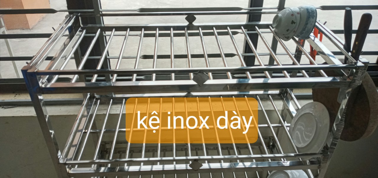 Mua tại Tiktokcty inox khởi hòa chuyên sx các sp về inox ,với dòng sp kệ để đồ nhà bếp inox được cty sx như sau 1 . kích thước kệ cao 75cm ,dài 104 cm ,sâu 40cm 2 , khung chính của kệ được làm bằng hộp 2x2 cm ,các tầng của kệ được đan bằng phi 10mm ,khoảng cách các phi là 4cm 3 . kệ thiết kế làm 3 tầng và được liên kết bằng bulong inox 4 . kệ dùng cho soong nồi ,bát đĩa ,dao thớt vv