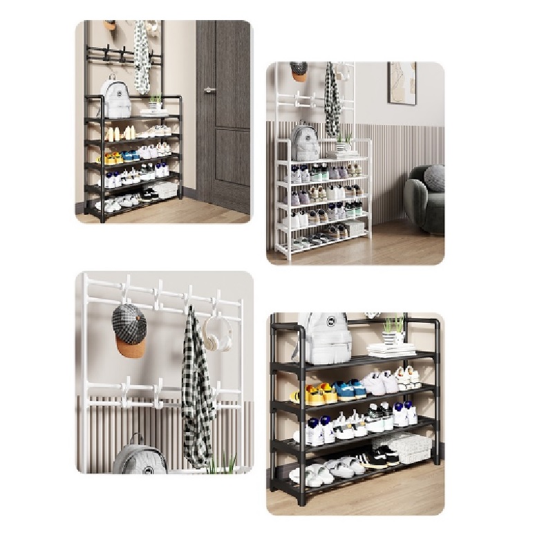 ✨Kệ để giày dép kệ đựng giày thông minh đa năng chữ L 4 tầng 5 tầng thông minh có móc treo quần áo và đồ dụng khác