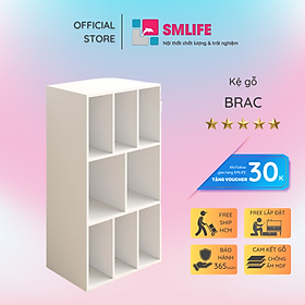 Mua tại TiktokKệ sách SMLIFE Brac được ví như một tác phẩm nghệ thuật với phong cách đơn giản sẽ giúp bạn xắp sếp những cuốn sách một cách sành điệu và độc đáo. Kệ sách Brac mang đến sự tinh tế, hiện đại cho phòng khách của bạn và đồng thời cung cấp một không gian lớn cho các vật dụng trang trí. Sản phẩm phù hợp cho mọi phong cách trang trí căn hộ và văn phòng làm việc. Sử dụng vật liệu ván ép công nghiệp MDF chống ẩm phủ Melamine cao cấp giúp kệ sách SMLIFE có độ bền cao, chống trầy và chống ẩm rất tốt. Bạn có thể tự lắp đặt sản phẩm dễ dàng với các phụ kiện và hướng dẫn đi kèm. ĐẶC ĐIỂM SẢN PHẨM:
