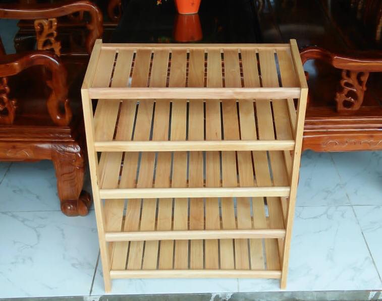 Kệ để giày dép 6 tầng có quai xách gỗ cao su thiên nhiên