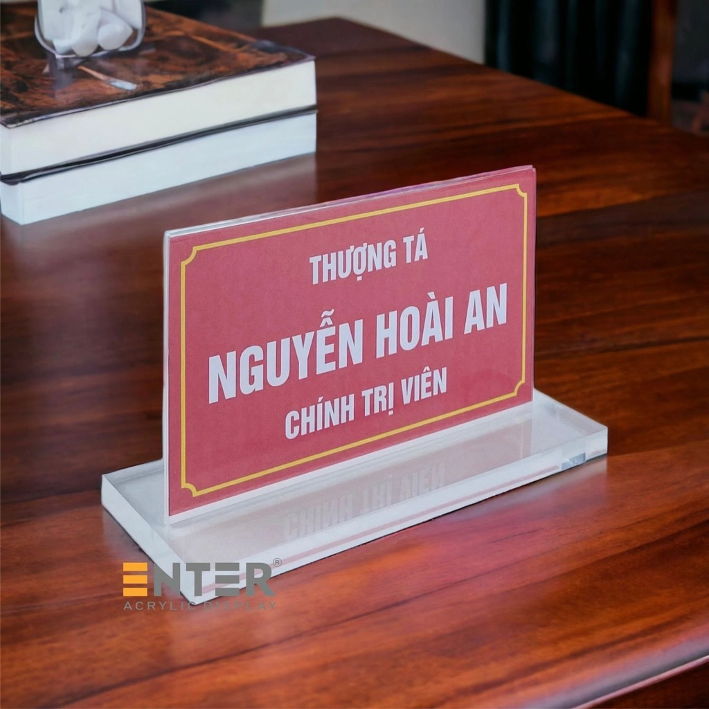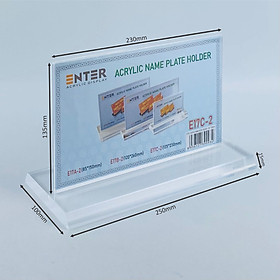 Kệ mica 2 mặt Enter E17C để bàn là sản phẩm làm từ Mica Đài Loan, dùng để giới thiệu tên và chức vụ của người sử dụng, sản phẩm thường được các công ty hay các sở ban ngành lựa chọn để ở bàn làm việc của những người giữ vị trí quan trọng hay được sử dụng ở các sự kiện, cuộc họp để trên bàn các đại biểu.