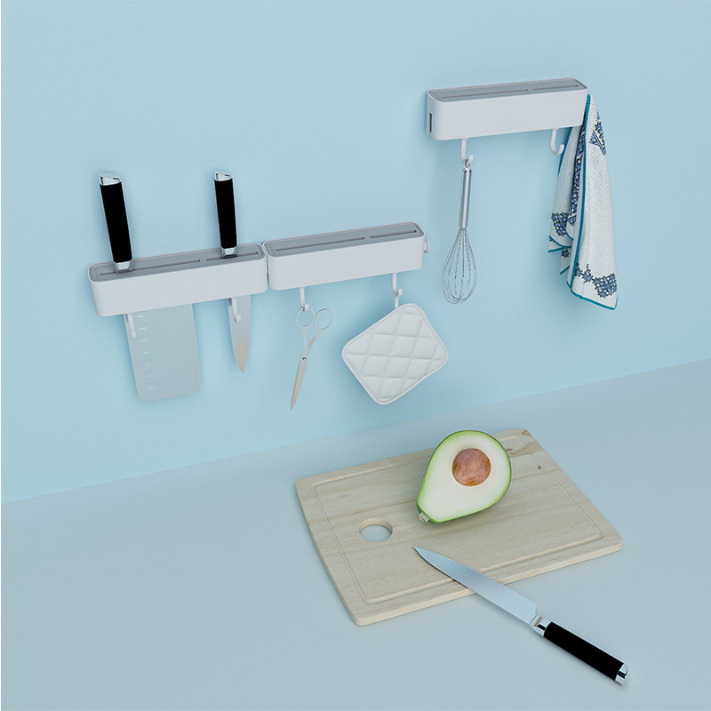 Tên sản phẩm: Kệ nhựa đựng dao dán tường có 2 móc Chất liệu:: Nhựa ABS Tiện ích: - Kiểu dáng thiết kế hiện đại; nhỏ gọn; đa chức năng. - Giá được làm bằng