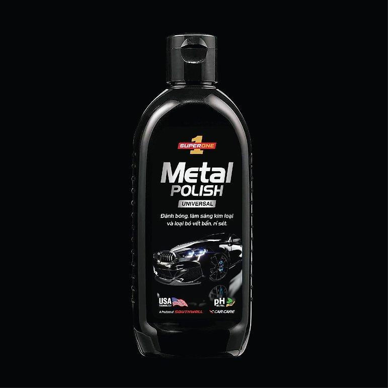 LÀM SẠCH, SÁNG BÓNG, CHỐNG RỈ SÉT KIM LOẠI Kem   Đánh Bóng Kim Loại Super One Metal Polish là một sản phẩm không thể thiếu   trong việc chăm sóc ô tô của bạn. Với khả năng làm sáng bóng các bề mặt kim   loại như lưới tản nhiệt, mâm vành, ốp trang trí, sản phẩm này nhanh chóng và   dễ dàng loại bỏ hiện tượng oxy hóa, vết rỉ sét, trầy xước nhỏ và các vết ố   khó chịu khác. Đặc biệt, sản phẩm không chứa axit an toàn cho tất cả các loại   bề mặt kim loại, bao gồm chrome, nhôm, đồng và thép không rỉ. Sản phẩm này   không chỉ làm sạch và đánh bóng mà còn đảm bảo không gây trầy xước, để lại lớp   bóng như gương. Công thức đặc biệt chứa các chất ức chế ăn mòn giúp ngăn ngừa   sự hình thành lại rỉ sét. Sử dụng dễ dàng và hiệu quả, giúp duy trì sự rạng   ngời của ô tô bạn trong thời gian dài.   Đặc Tính Sản Phẩm