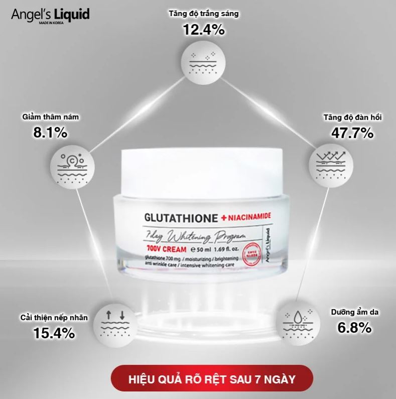 Kem Dưỡng Hỗ Trợ Giảm Thâm Nám Angel's Liquid Glutathione + Niacinamide 7Day Whitening Program 700 V-Cream 50ml