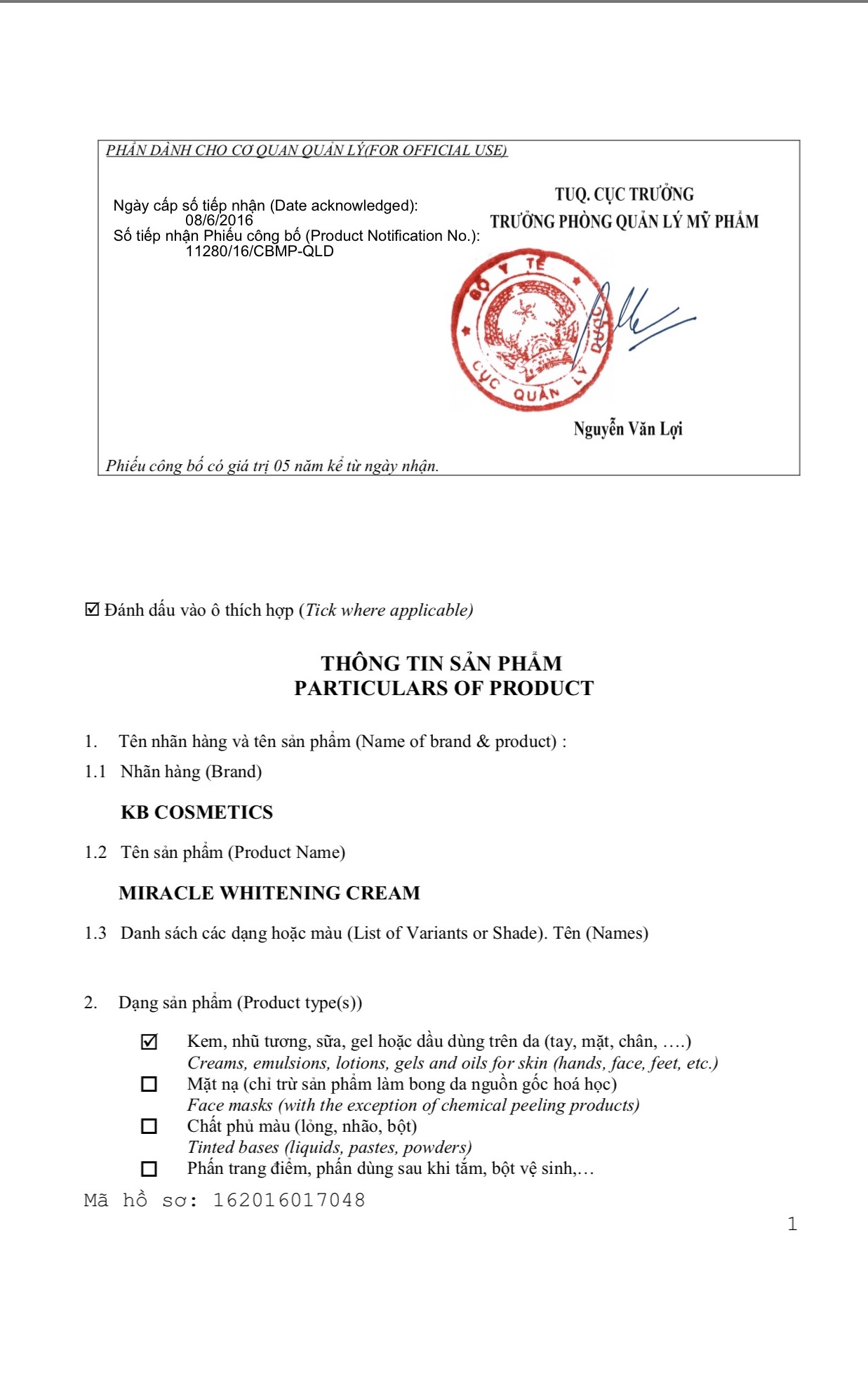 Miracle Whitening Cream không dừng lại ở đặc điểm là một loại kem dưỡng thông thường, Miracle whitening Cream bổ sung thành phần hỗ trợ trị và làm trắng da an toàn hiệu quả.
