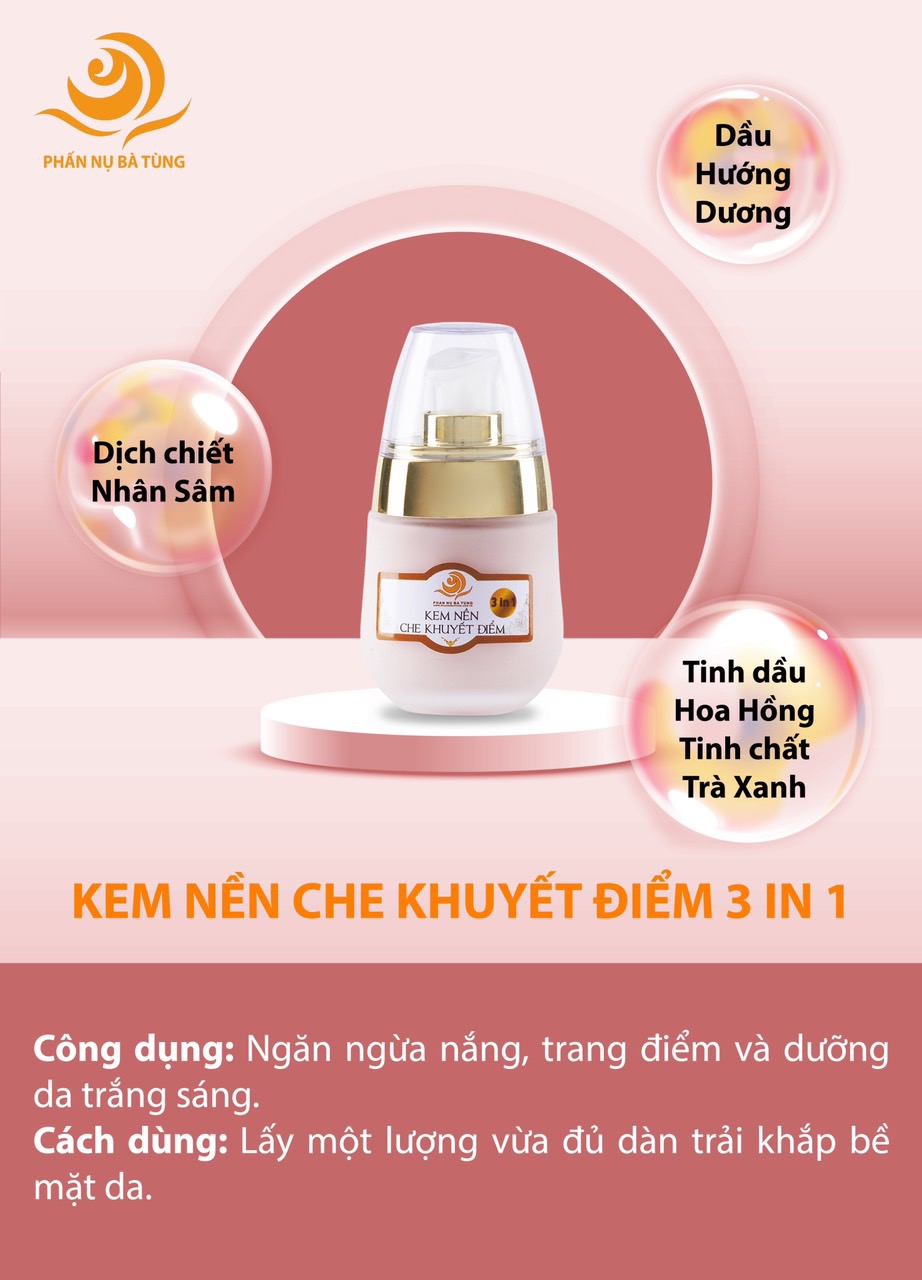 Công dụng: Đây là sản phẩm vượt trội với ba công dụng: ngăn ngừa nắng, trang điểm vàdưỡng da trắng sáng. Có tác dụng tạo lớp nền che phủ tự nhiên mỏng mịn, tăng độ