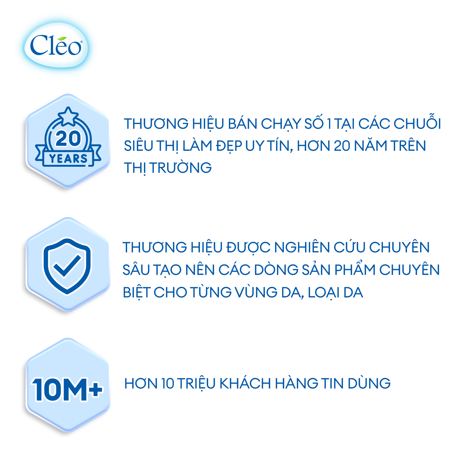 Ra đời năm 2002, Cléo chuyên cung cấp các giải pháp về tẩy lông và sản phẩm dưỡng sau tẩy lông. Đến nay, Cléo đã trở thành một trong những thương hiệu hàng đầu mỗi khi nhắc đến các giải pháp giúp các bạn gái đánh bay mối lo ngại về lông cơ thể Tất cả sản phẩm tẩy lông Cléo đều được kiểm nghiệm bởi Sở Y Tế TP.HCM về độ an toàn và dịu nhẹ đối với làn da, đặc biệt làn da nhạy cảm