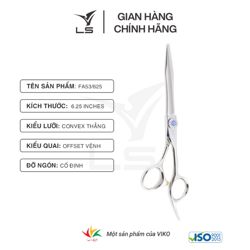 Mua tại TiktokKéo cắt tóc LS là một thương hiệu được sản xuất bởi Công ty TNHH Dụng cụ cắt Việt Hàn (Viko cutting tools Company limited) - đáp ứng đầy đủ các tiêu chuẩn quốc tế. Kéo LS thuộc dòng sản phẩm phổ thông, hướng tới đại đa số khách hàng trung bình tại các tỉnh thành trong cả nước. Với hệ thống bán hàng rộng khắp được xây dựng trong 14 năm phát triển, Kéo LS luôn nỗ lực phục vụ khách hàng một cách thuận tiện nhất. THÔNG TIN SẢN PHẨM KÉO CẮT TÓC LS FA53/6.25