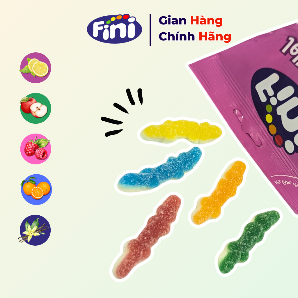 - Vị trái cây tươi mát: Kẹo dẻo Fini Jelly Crocodiles có 5 hương vị trái cây hấp dẫn: chanh, táo, cam, mâm xôi và vani, cho bạn trải nghiệm vị giác đa dạng và thú vị.