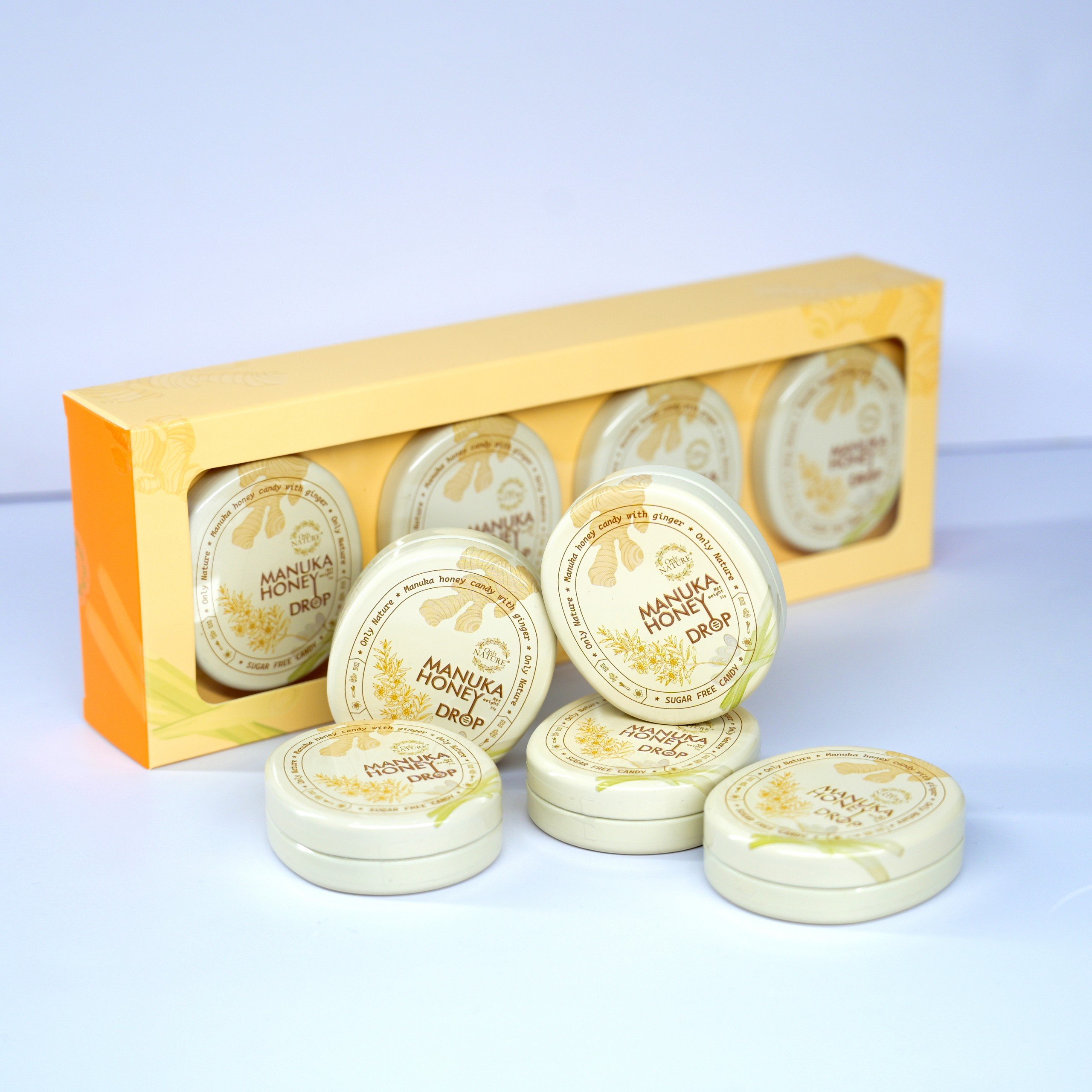 KẸO GỪNG SẢ MẬT ONG MANUKA - MANUKA HONEY DROP – SUGAR FREE Kẹo gừng sả mật ong Manuka là sự kết hợp độc đáo từ tinh chất gừng, sả, đường isomalt* và mật ong