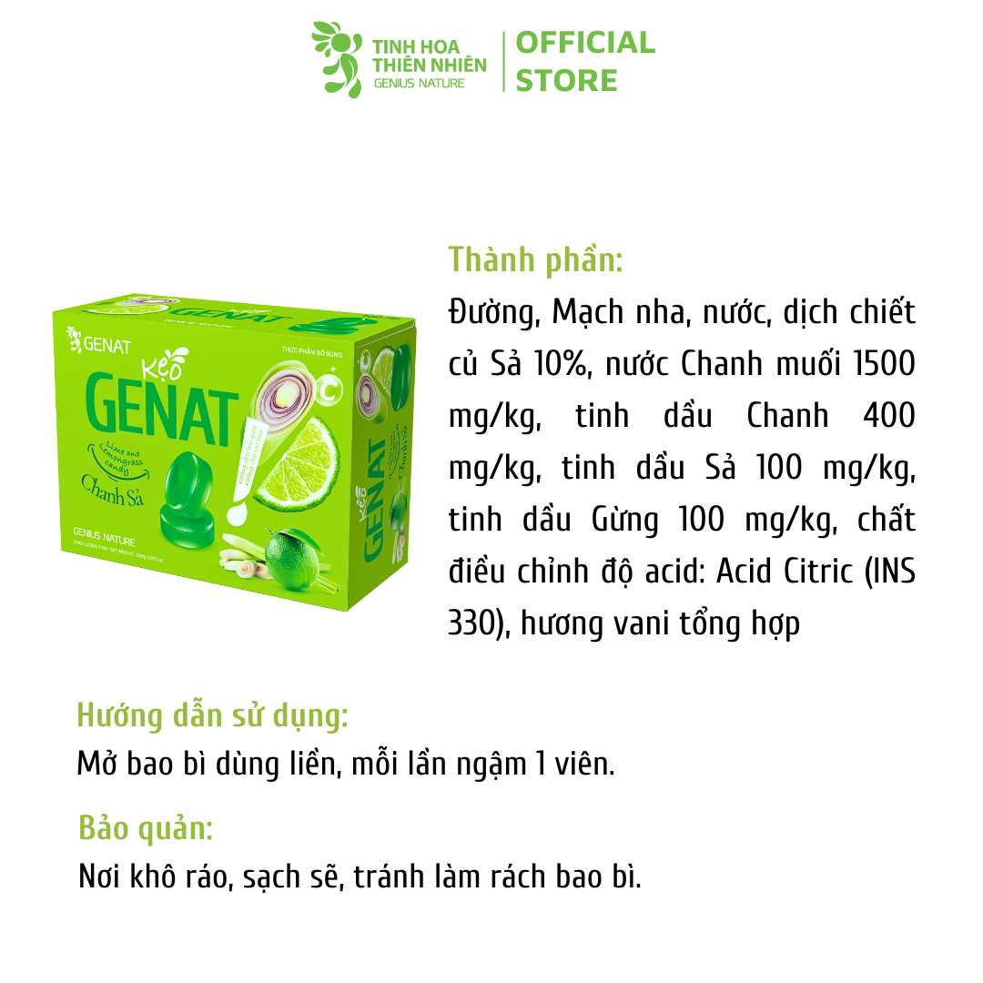 ✨Kẹo ngậm Genat Chanh Sả (Hộp 100 viên) - Giao 2H HCM