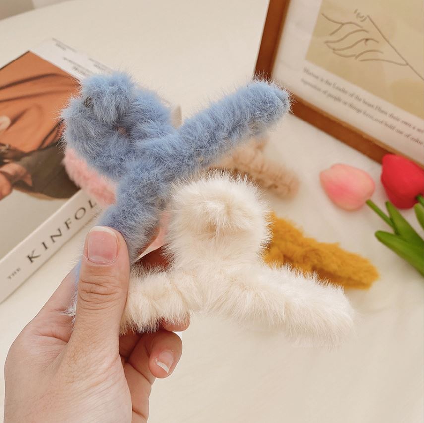 ✨Kẹp Tóc Phủ Lông Cỡ Lớn Phong Cách Hàn Quốc, Kẹp Tóc Thu Đông Dễ Thương
