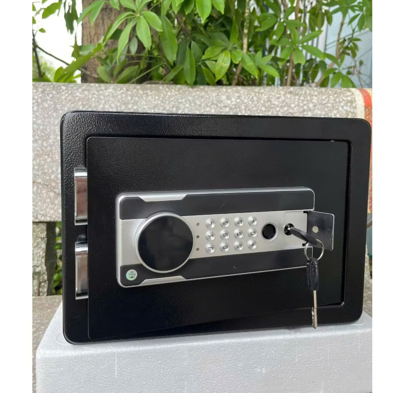 THÔNG SỐ KỸ THUẬT: - Két sắt vân tay, két sắt mật khẩu , khóa cơ - Phụ kiện kèm theo: 2 Đinh vít tường, 4 Pin AA, 2 Chìa khóa cơ dự phòng -
