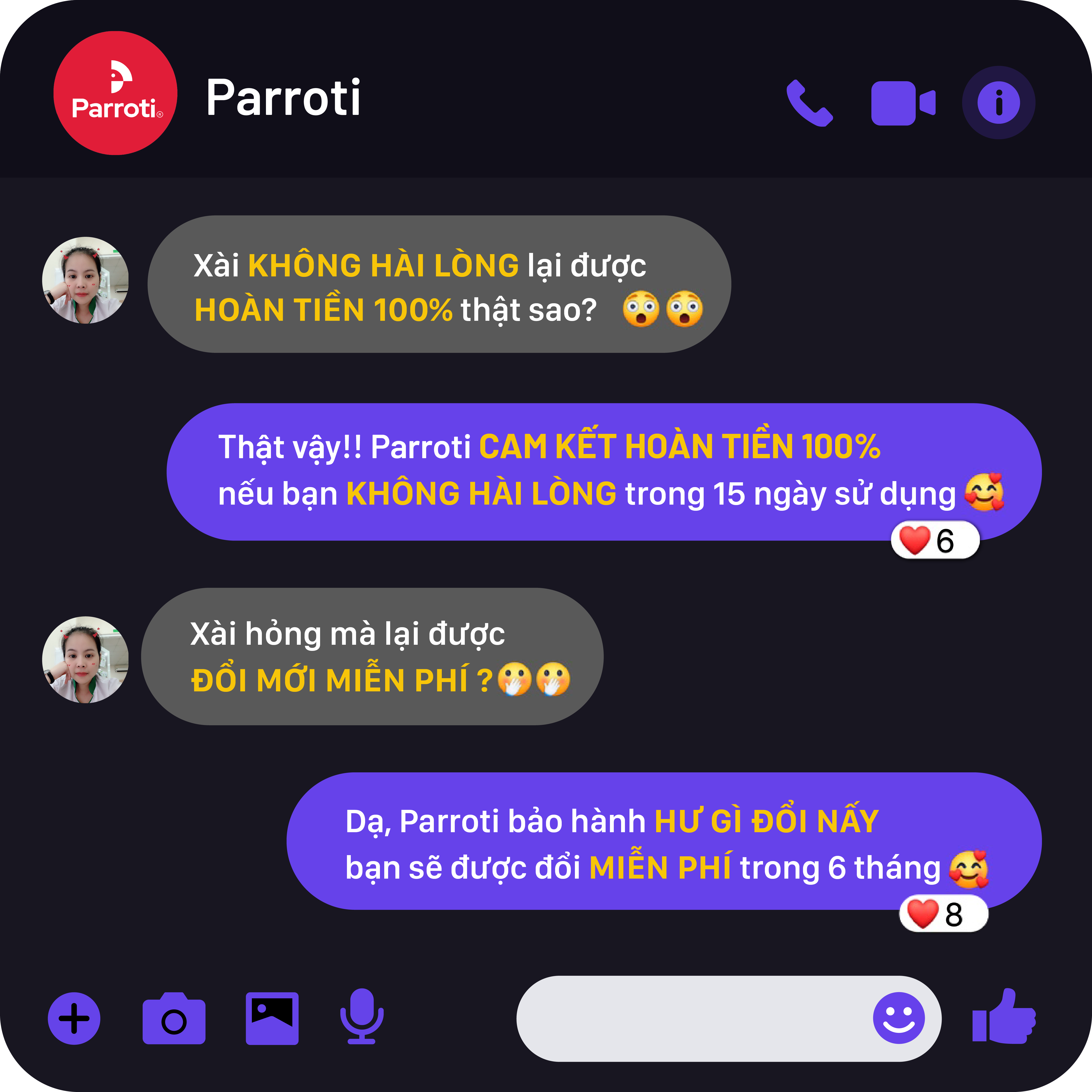 - Chất lượng đảm bảo 100% và đúng như hình ảnh, Parroti sẽ hoàn tiền 200% nếu sản phẩm không giống mô tả.