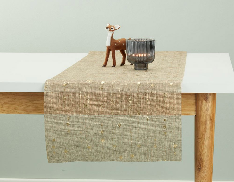 Khăn trải bàn runner BURE được dệt từ chất liệu 100% polyester hạn chế bám bẩn, dễ vệ sinh cùng họa tiết ánh sao lấp ánh giúp trang trí bữa ăn thêm sinh động và ngon miệng.