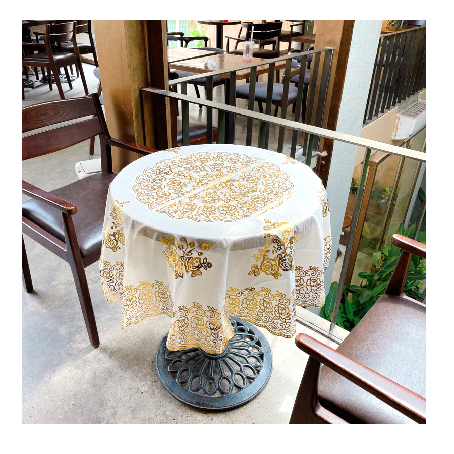 ✨Khăn Trải Bàn WLG.751 tròn, đường kính 180 cm, hoa văn phủ nhũ vàng, nhựa PVC dẻo, không thấm nước