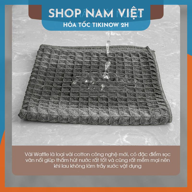Khăn Vải Cotton Waffle Lau Bếp, Máy Pha Cà Phê, Vật Dụng Quý Ưu Điểm Chính Thấm hút nước và dầu rất tốt. Khăn mềm, không xù rụng lông. Giặt máy thoải mái vì vải