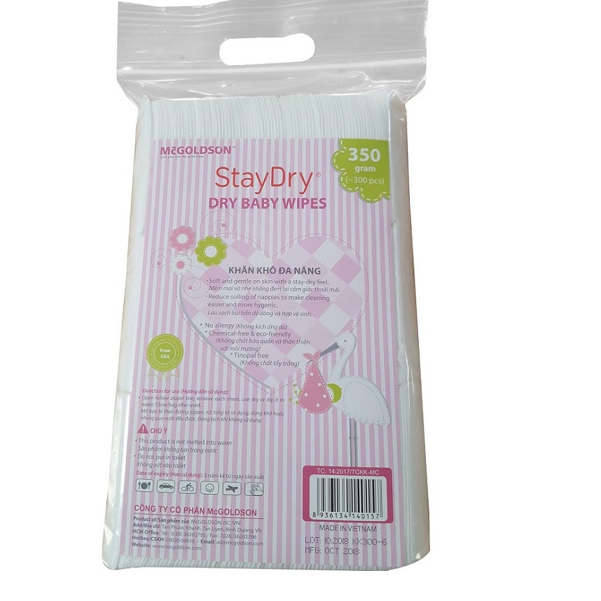 Đặc điểm nổi bật - Túi 550g khăn khô đa năng StayDry không mùi mang lại cảm giác dễ chịu, êm ái cho bé khi sử dụng nhờ được làm từ chất liệu vải không