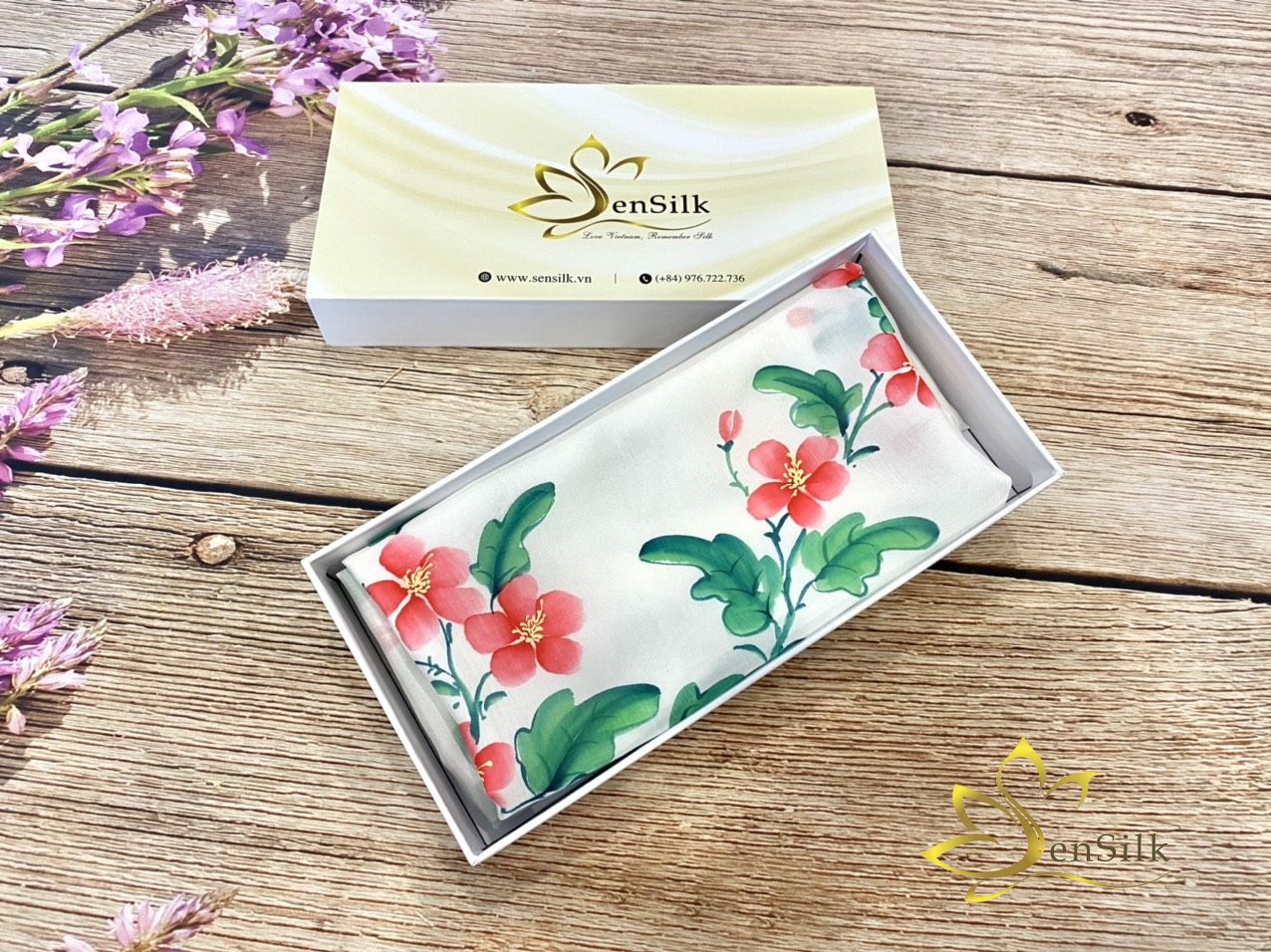 SenSilk – Lụa Tơ Tằm Thuần Việt kết hợp hài hoà giữa Lụa tơ tằm Bảo Lộc cao cấp với công nghệ in kỹ thuật số hiện đại tạo nên những chiếc khăn lụa in kỹ