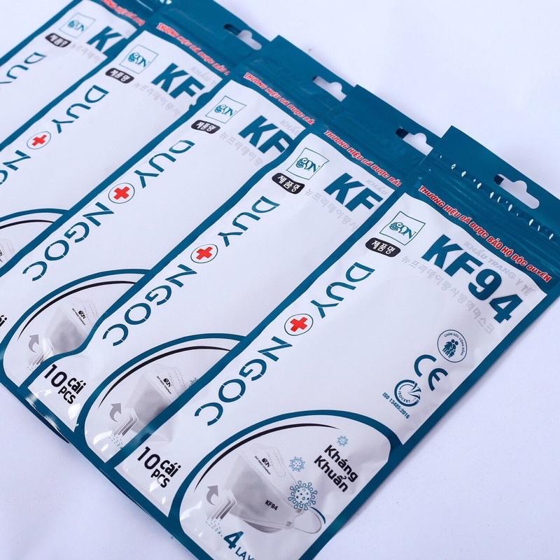 khẩu trang KF94 Duy Ngọc hàng đạt chuẩn thương hiệu,4 lớp bảo vệ dày dặn ngăn ngừa bụi bẩn vi rút THÀNH PHẦN: @ Vải không dệt 100%PP, vải SMS cao cấp. @ Thanh nẹp