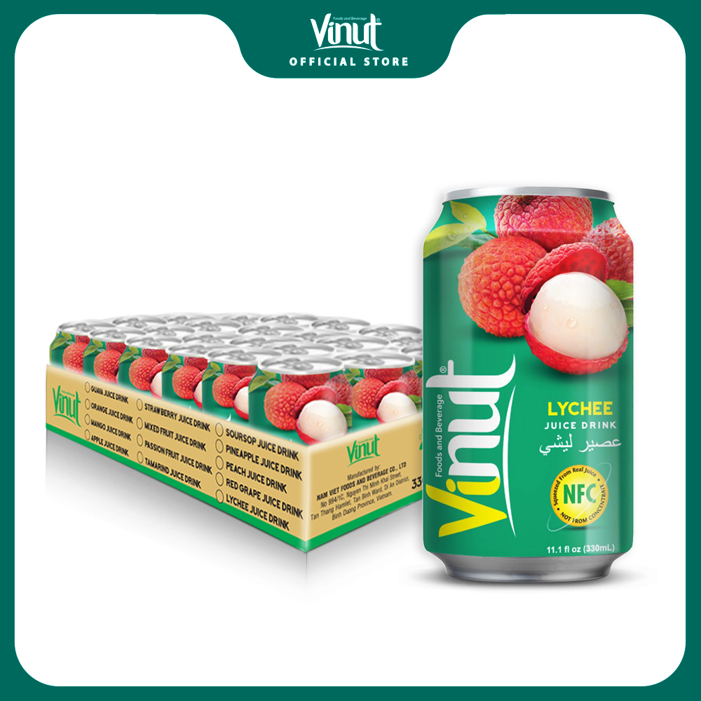 Vinut là dòng nước ép trái cây tự nhiên xuất phát từ các loại trái cây tươi tại Việt Nam, được kiểm soát chặt chẽ trong suốt quá trình canh tác, hoàn toàn tự nhiên không thêm chất bảo quản,không đường, màu nhân tạo, được sản xuất bằng công nghệ hiện đại tạo nên hương vị tươi nguyên chất tự nhiên, là những sản phẩm ưu việt cao cấp chất lượng hàng đầu vì sức khỏe người tiêu dùng, bằng chính tinh thần, ý thức trách nhiệm và tình yêu mỗi thành viên trong công ty đối với gia đình và xã hội . Tên sản phẩm   Thùng 24 Lon Nước Ép Vải Vinut 330ml  Thương hiệu VINUT Dung tích 330ml  Sản xuất tại NAM VIET Foods & Beverage Company Limited Hạn sử dụng Lon - 24 tháng / Chai - 12 tháng Quy cách đóng gói 330ml/lon - 06lon/lốc - 04lốc/khay Hướng dẫn sử dụng Không dùng khi hết hạn, ngon hơn khi uống lạnh Hướng dẫn bảo quản Để nơi khô thoáng, tránh ánh nắng trực tiếp HÌNH ẢNH SẢN PHẨM
