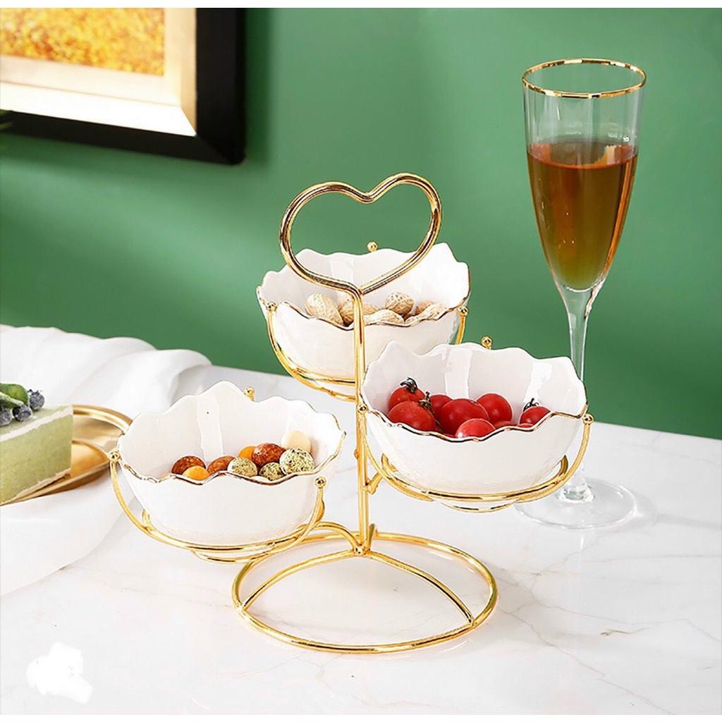 Khay đựng bánh kẹo 3 tầng dành cho phòng khách gia đình sử dụng nhiều lần, vô cùng thích hợp để bánh kẹo tết, trang trí bàn tiệc, teabreak, Vừa lịch sự vừa đẹp mắt