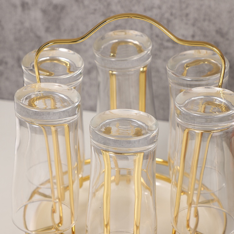 Chất liệu: thủy tinh Bộ sản phẩm gồm: 6 cốc thủy viền vàng VÀ GIÁ ÚP CỐC THEO HÌNH Thiết kế đẹp mắt, phù hợp tiện dụng Độ bền cao, chịu nhiệt tốt, hạn chế