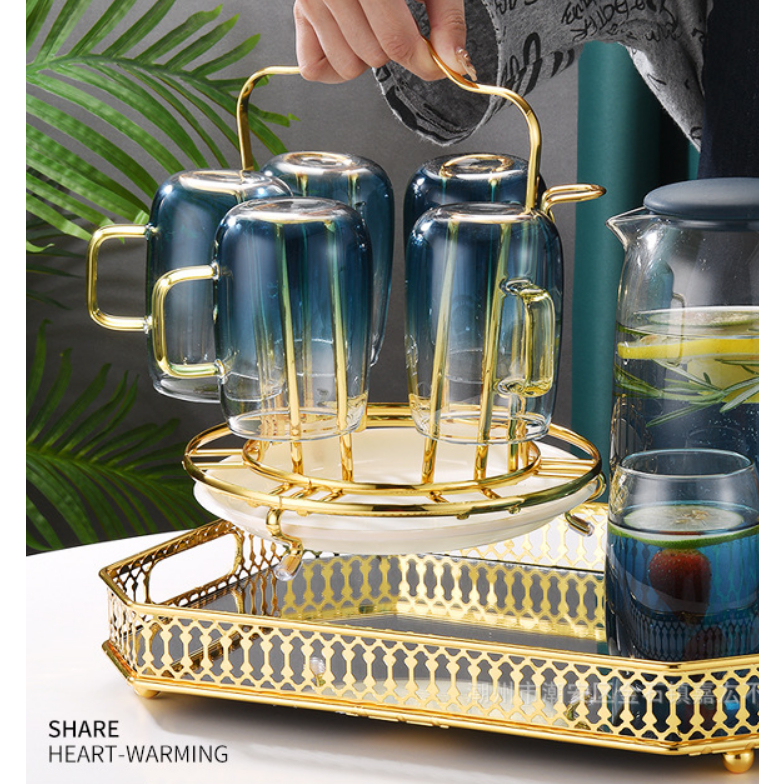 Combo Bộ 6 cốc thủy tinh cao cấp kèm giá úp tròn có khay hứng Combo gồm: 1 bình 6 cốc cốc 1 giá úp hươu 1 khay vương miện