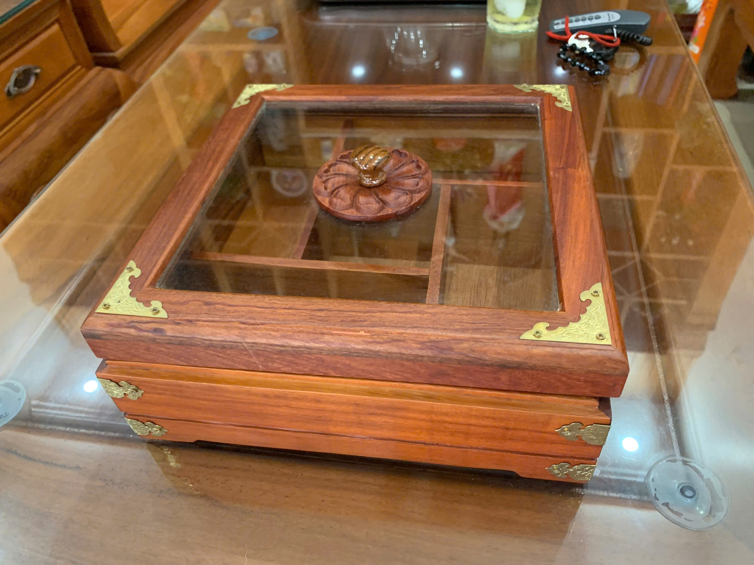 Hộp đựng mứt Tết bánh kẹo gỗ Hương chạm khắc Phúc Lộc Thọ [CTL794] BẾP MỘC LINH ĐAN_LH: 0915635588