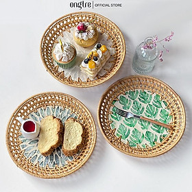 Khay mây tròn khảm trai có tay cầm ONGTRE đựng đồ, trang trí tiệc, decor chụp ảnh sản phẩm - Sản phẩm được làm hoàn toàn thủ công bởi những người thợ có tay nghề