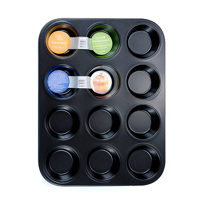 Khay Nướng Bánh CD 12Cup Carlmann CM008259 được làm từ chất liệu thép carbon không gỉ, lòng khay được phủ lớp chống dính giúp tạo tạo ra những chiếc bánh thơm ngon và đẹp mắt.