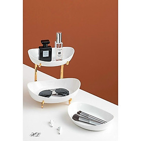 ✨KHAY SỨ ĐỰNG BÁNH KẸO HOA QUẢ HAI TẦNG KHUNG KIM LOẠI MẠ VÀNG CAO CẤP - TRẮNG