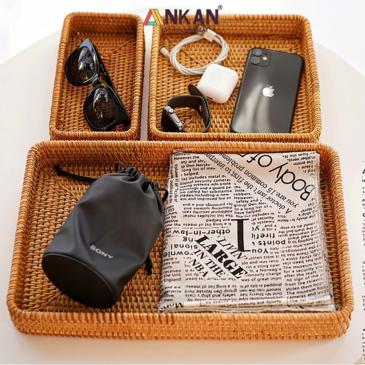 Khay mây tre ANKAN được làm từ sợi mây guột tự nhiên, đan tay tỉ mỉ, chắc chắn và tinh tế.