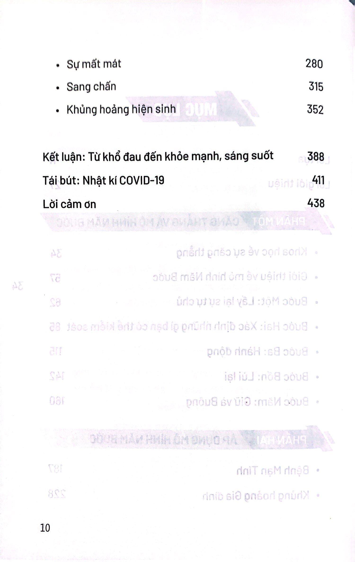 Khi Khủng Hoảng Ập Đến - 5 Bước Đối Phó Với Căng Thẳng Mạn Tính Bạn đang khổ sở vì căng thẳng. Điều gì đó đã sảy ra với bạn hoặc người mà bạn yêu thương và bạn ngã quỵ trước quá nhiều cảm xúc tiêu cực: lo lắng, đau buồn, hoài nghi, do dự, tức giận, bất lực, tuyệt vọng. Cho dù tình cảnh cá nhân của bạn là thế nào thì có một điều có thể chắc chắn: bạn đang chết đuổi và cần một chiếc phao cứu sinh. Khủng hoảng trong cuộc sống là điều không thể tránh khỏi: Tất cả chúng ta đều có lúc phải đối mặt với cơn khủng hoảng nào đó khiến ta bất an, lo lắng - đó là một phần của cuộc sống. Nhưng từ một cơn khủng hoảng, có thể biến thành căng thẳng mạn tính kéo dài. Căng thẳng mạn tính được xếp loại là một trong những mối đe dọa nghiêm trọng nhất đối với sức khỏe và tuổi thọ con người. Làm thế nào để chúng ta xác định được nó, chế ngự nó và trở lại trạng thái bình thường, đó là điều rất quan trọng đối với sức khỏe tinh thần à thể chất của chúng ta Quy trình 5 bước đơn giản để kiểm soát bất kì khủng hoảng nào trong cuộc sống "Khi khủng hoảng ập đến" là cuốn cẩm nang mà bất kì ai đang đối mặt với biến động cảm xúc nghiêm trọng đều có thể sử dụng để xác định và làm dịu lại tập hợp lạ lùng những yếu tố gây căng thẳng đang bủa vây họ. Cuốn sách này chứa đựng những ý tưởng thiết thực và nó cũng cho thấy ứng dụng của chúng trong thực tế, với các nghiên cứu điển hình đầy mạnh mẽ được tập hợp lại một cách hữu ích theo các chủ đề là mất mát, chấn thương, khủng hoảng gia đình, bệnh mạn tính và khủng hoảng hiện sinh. Mô hình 05 bước đã giúp ích cho nhiều người đang phải khổ sở vì những cơn khủng hoảng tồi tệ nhất trong cuộc sống mà người ta có thể tưởng tượng được, chúng có thể hữu ích cới cả bạn nữa. Giờ là lúc phải học cách đối phó với chúng một cách hiệu quả để ngăn chặn bất kì tổn thương lâu dài nào về thể chất hoặc tinh thần, và thúc đẩy sự phát triển hậu sang chấn.