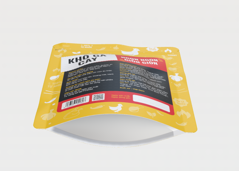 Thành phần: Thịt ức gà 96%, nước mắm, đường, ớt 0,5%, muối i-ốt, lá chanh, chất điều vị ( INS 621, INS 627, INS 631).