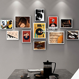Bộ khung ảnh 11 khung trang trí decor âm nhạc 1 - Kích thước của tranh : Kích thước : SIZE 1 : 3 khung 20x25cm + 8 khung 13x18cm SIZE 2 : 3 khung